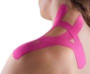 Kinesio® Tex Tape is applied over muscles and fascia to reduce pain and inflammation, relax overused, injured muscles and to support muscles in movement. It is a non-restrictive type of taping which allows for full range of motion. A few condition it helps treat include cervical and lumbar pain, shoulder and knee/foot pain, elbow tendonitis, whiplash and plantar fasciitis.